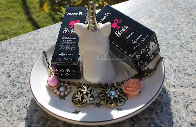 Esta linha make B Barbie Edition, é composta por sete tons de batons e vernizes, variam entre as cores cor-de-rosa e roxo e (na minha opinião o produto favorito), uma fragância floral ambarada para completar o look.