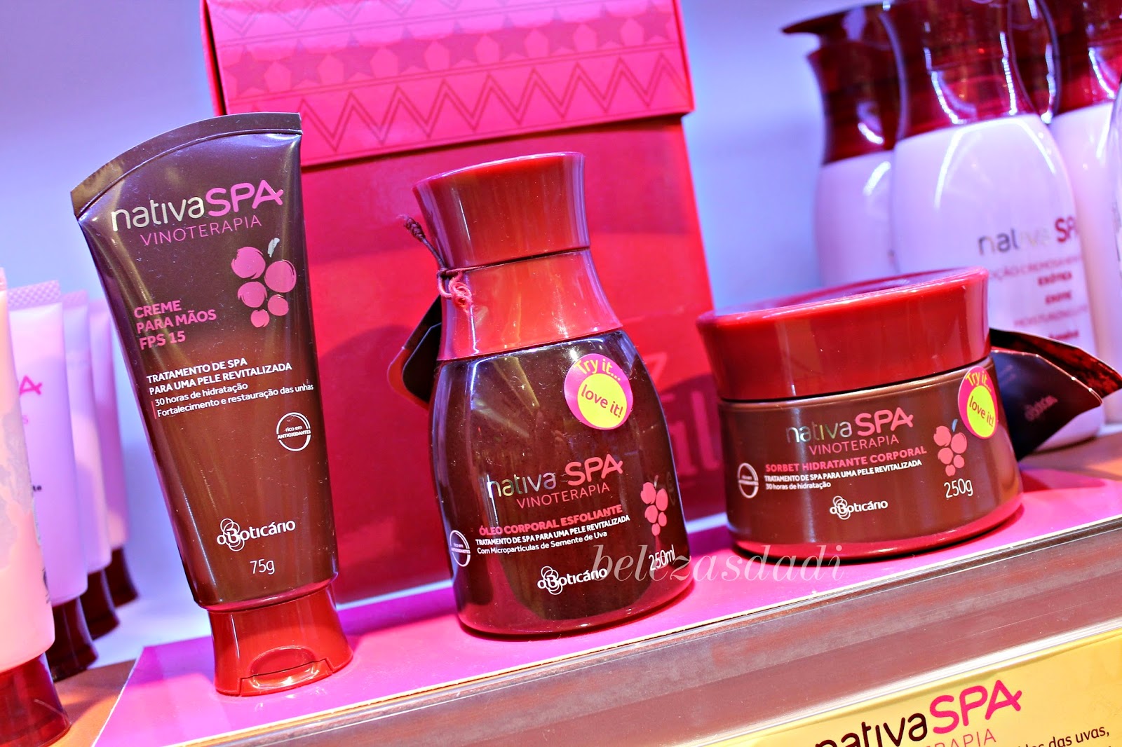 hoje trago revisão de 3 produtos que já tinha mencionado aqui no blogue e são 3 produtos da linha (pré lançamento) da Nativa Spa Vinoterapia, para o ano volta meninas até lá é só mesmo um pré-lançamento aproveitem ( na minha opinião o kit que compensa mais é o que traz três produtos.