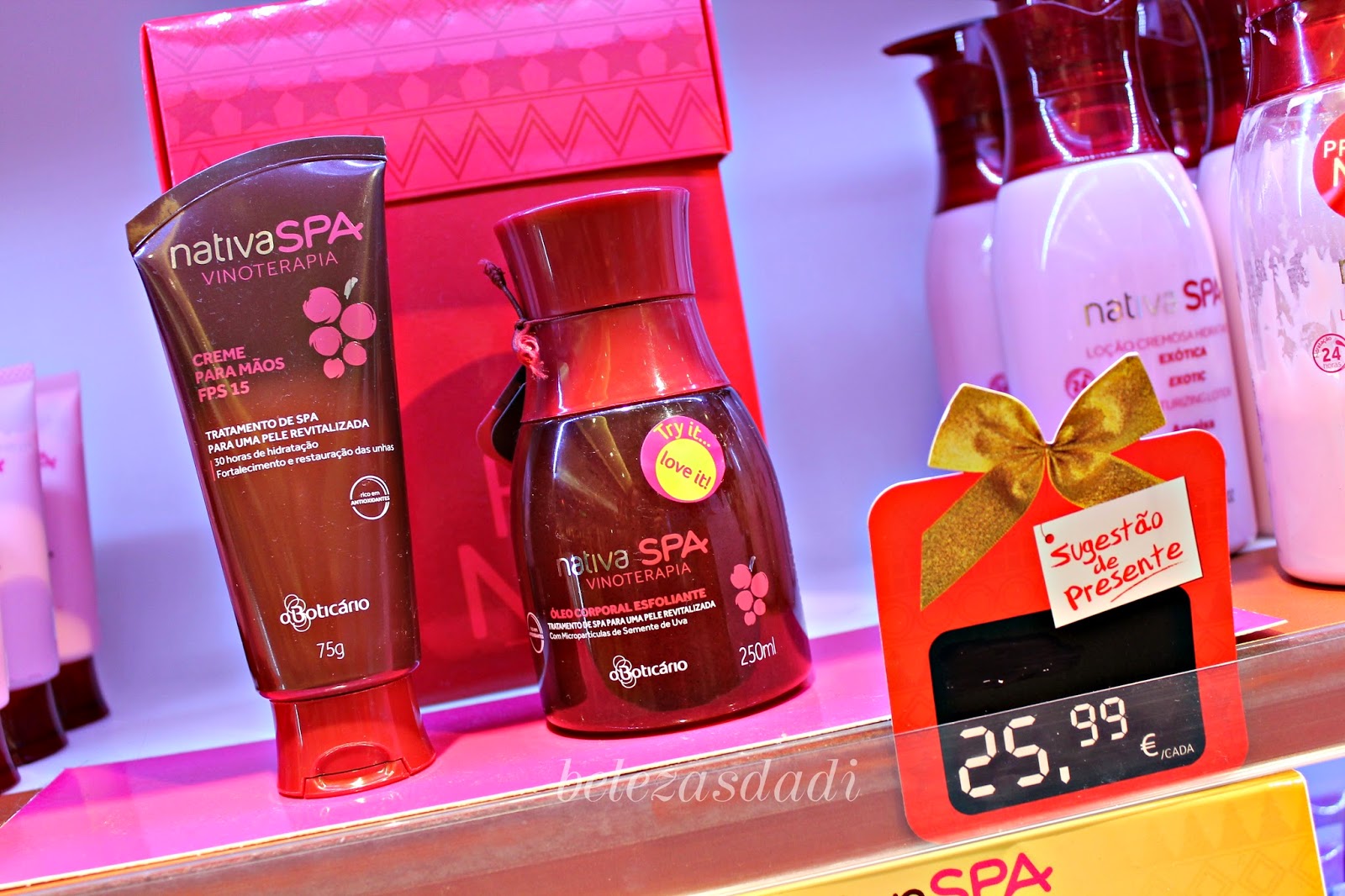 Desta última linha faltam aqui os sabonetes, não tinham, espaço na estante mas cheiram super bem, agradaram-me mais que a loção corporal. A loja tem vários produtos em promoção tanto de maquilhagem como shampos (nativa spa e cuide-se bem). Bons descontos ^^